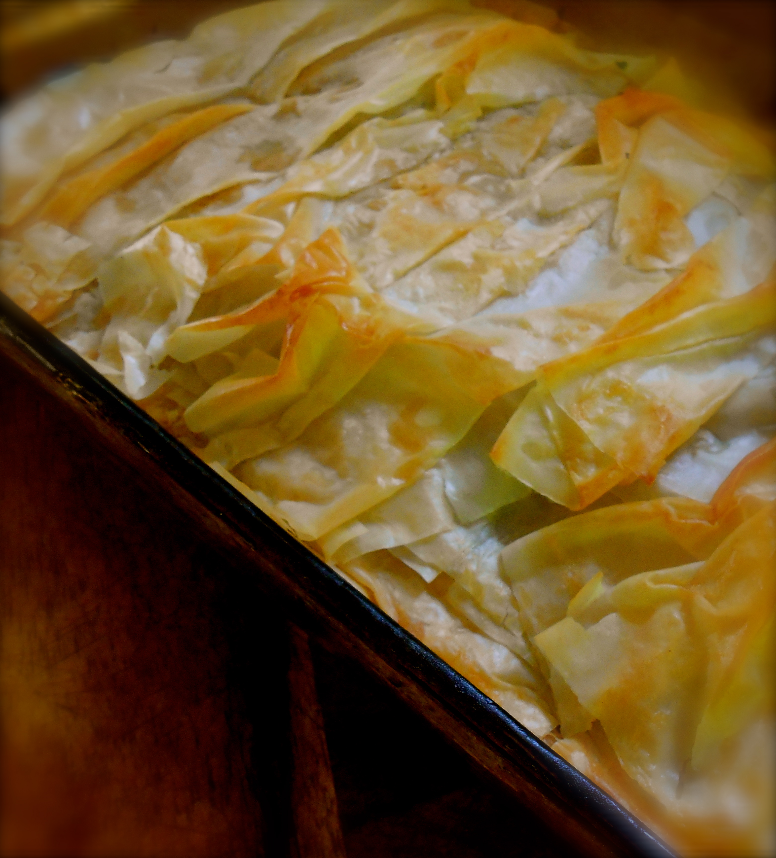 Looks wonderful. Doesn’t look too hard to put together. Love the look of the folded filo on top. It adds mystery.