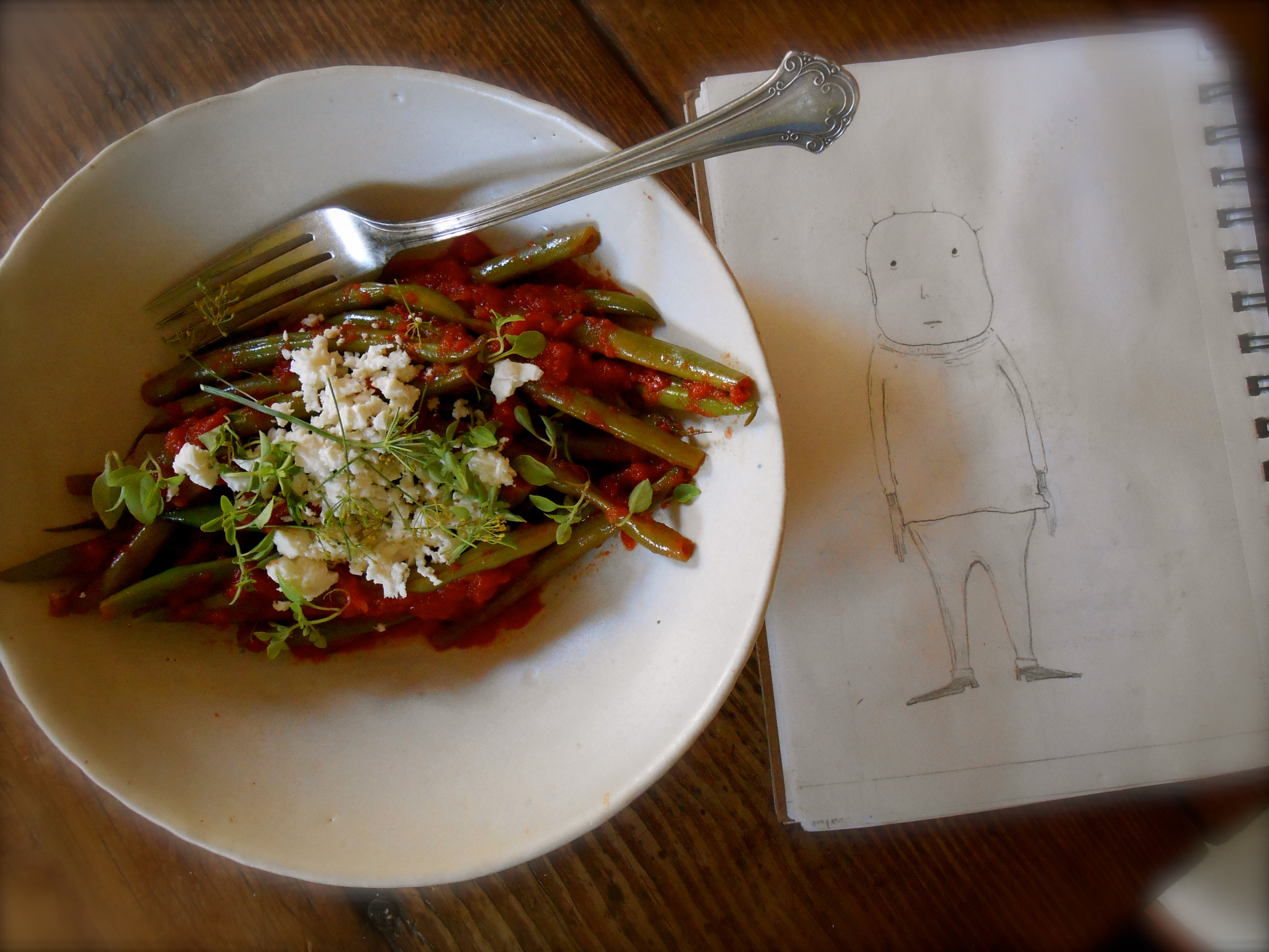 Childhood flashback… I used to steal the green beans and eat them raw and then eat the feta and none of the cooked beans. I might try this dish again now that I’m older and am not being forced to eat it weekly… Such a cute photo!