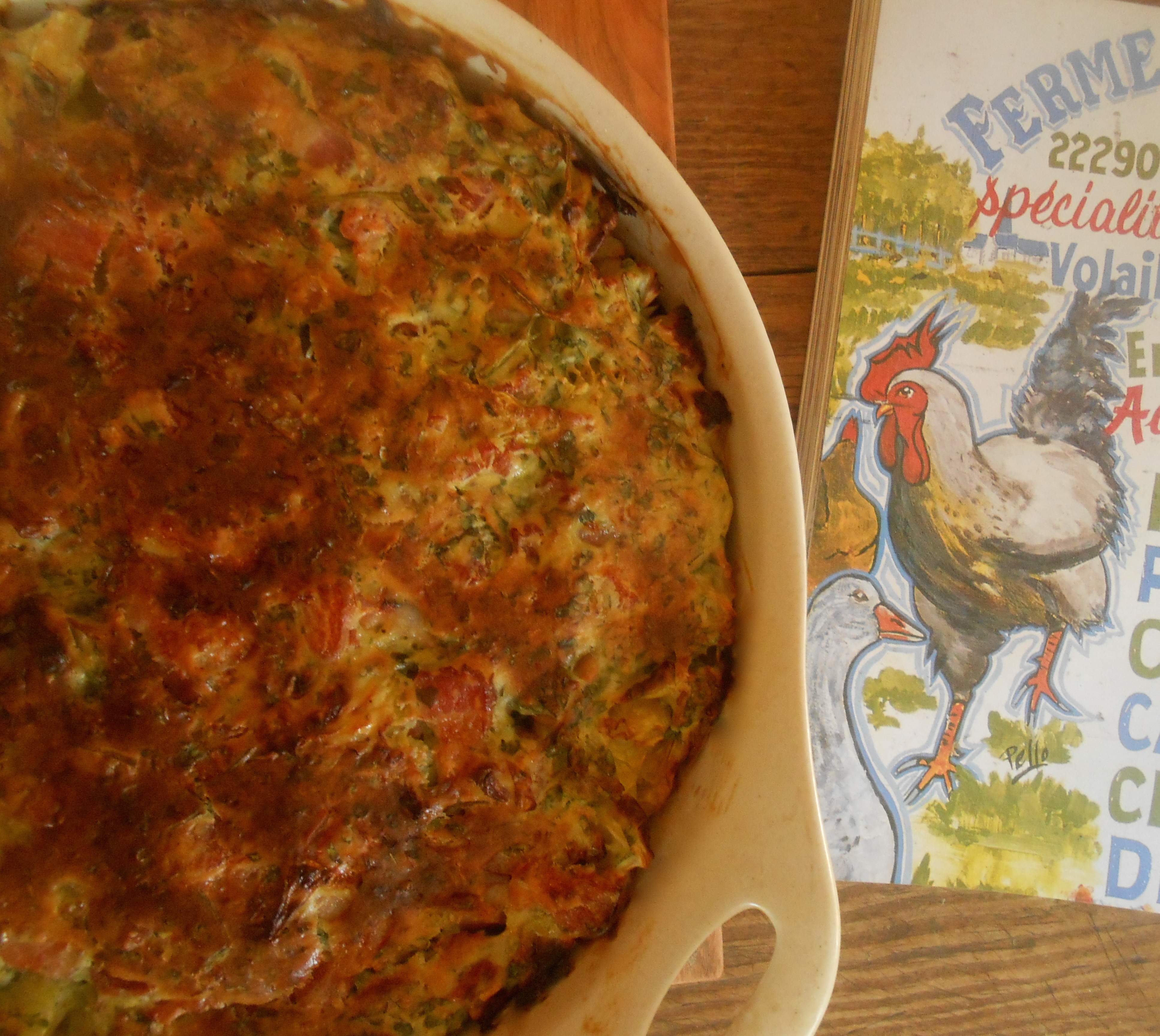 A recipe from My French Kitchen. “This is an old peasant dish from the Auvergne region, and although it is known as Galette au Chou, it is quite different from the Breton galettes. It is dense and filling, and can be eaten hot or cold, although this dish is best served just warm.” quote from book.