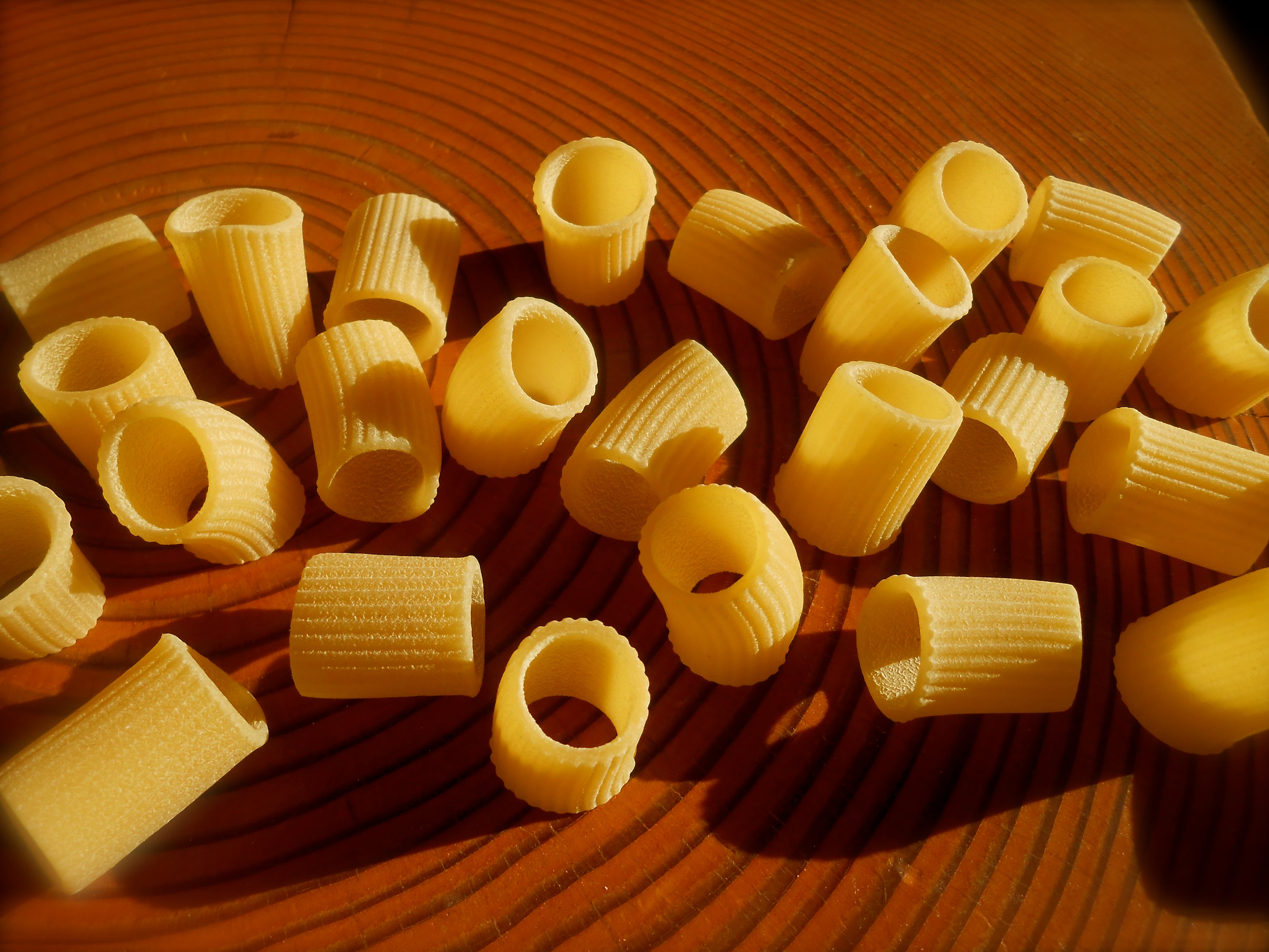I used mezzi rigatoni. This would have been wonderful with added english peas. The peas would have fit perfectly in the wide open holes of the rigatoni. But we couldn’t have anything green inside now could we?