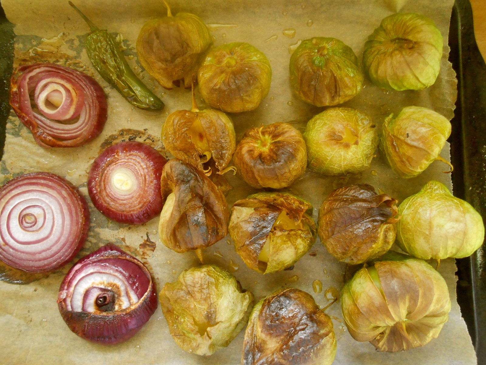 Turned out to be an interesting comparison of oven roasted vs. grilled vegetables. The fire roasted flavor from the grilled vegetables was quite nice, however, when I prepare this again rather than grill the chicken I will simmer it in the chicken stock to achieve the tender moist texture that makes chilaquiles so wonderful.