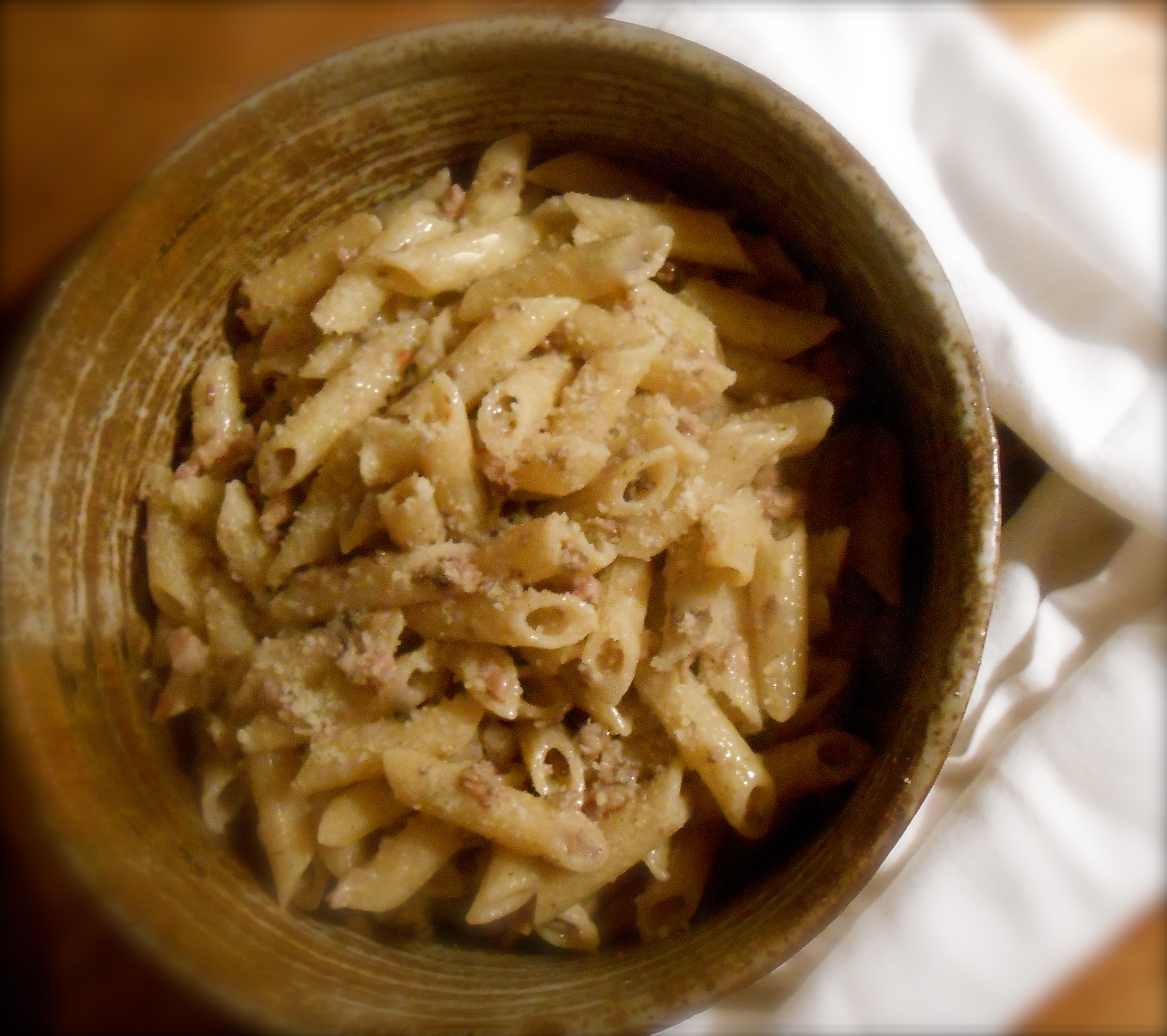 Perhaps the combination and texture of this sauce would be better with another pasta shape. I only had penne on hand so finely chopping the mushrooms helped the bits find their way into the pasta tubes. This is another recipe inspired by the late Marcella Hazen.