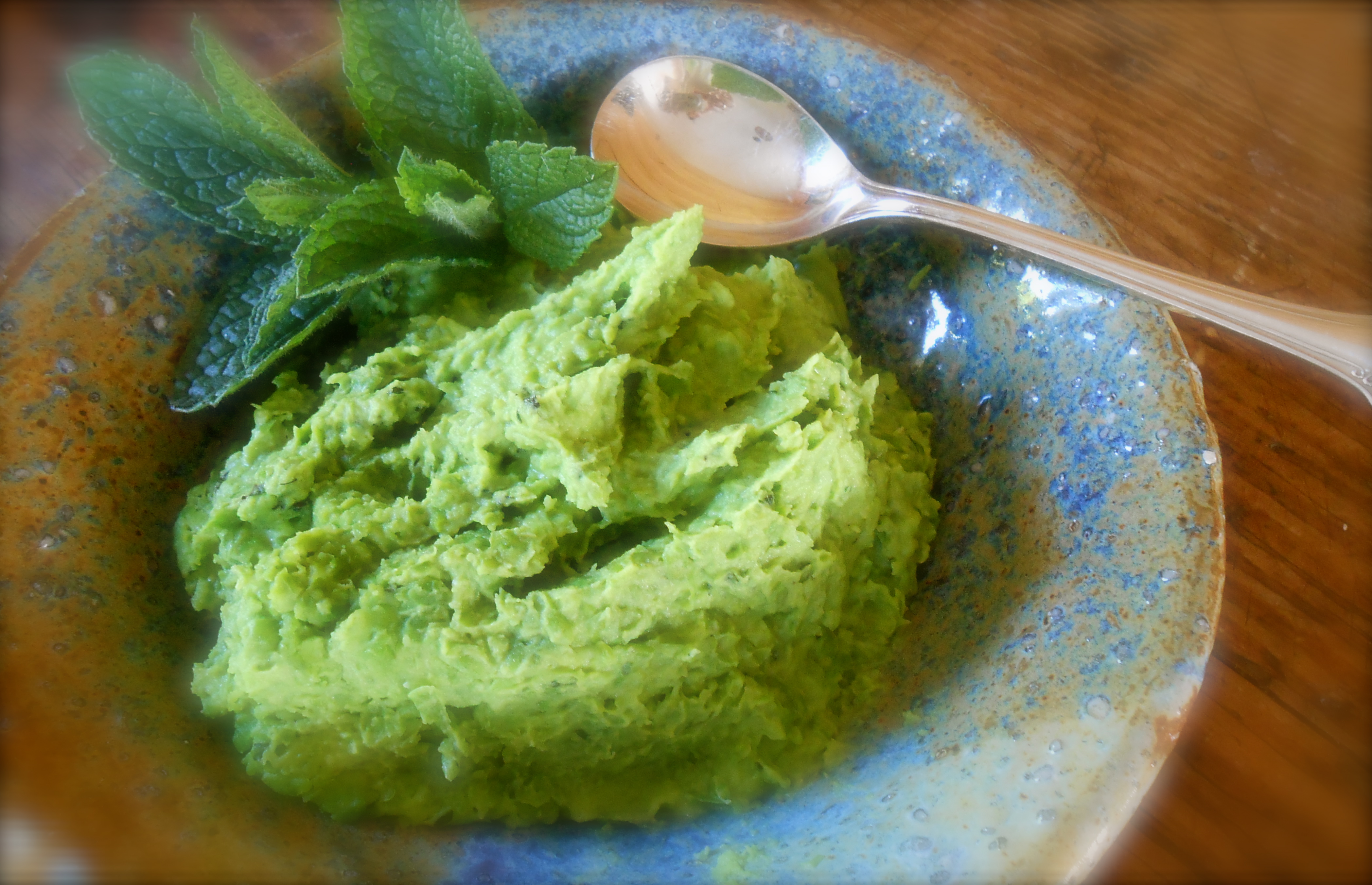 This was suppose to be a mint puree. It turned out a little thicker than I expected and instead of thinning it out I decided to keep the consistency as a mash. Very enjoyable. I seem to have been a little stuck on peas and mint lately in my posting. I just love using what is in season and freshly harvested.