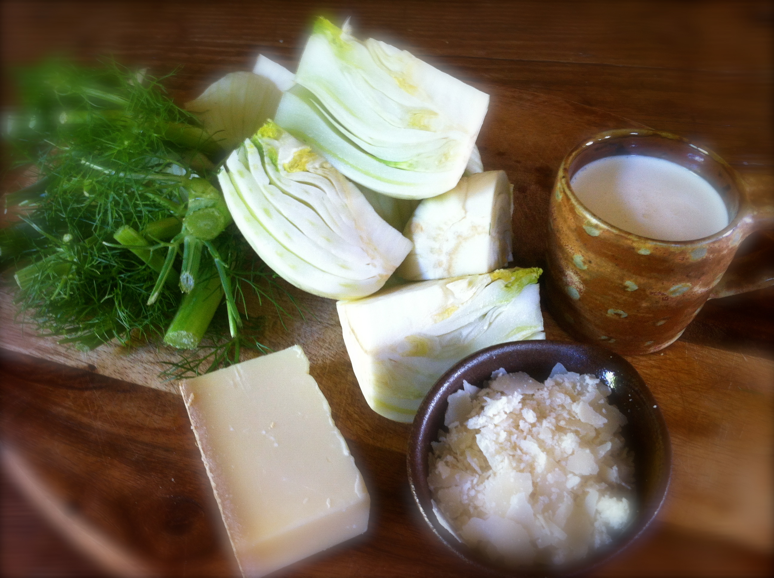 It is still cool and rainy here in Seattle. Memorial Day usually inspires outdoor grilling, however, the rain never stopped yesterday. Turned out to be a perfect day to grill indoors and perhaps make a fennel and gruyére gratin. This was the first time I cooked lamb and it was delicious. I always thought in order to have succulent lamb it needed to be braised for hours in a stew. We used the most simplest stove top grilling technique and we were pleasantly surprised how well it turned out. I wonder how many other cooking misconceptions I have! The fennel gratin was a perfect accompaniment to this dinner. Unlike a potato gratin the fennel is light and the gruyére gave it a comforting element needed for a cool rainy day.