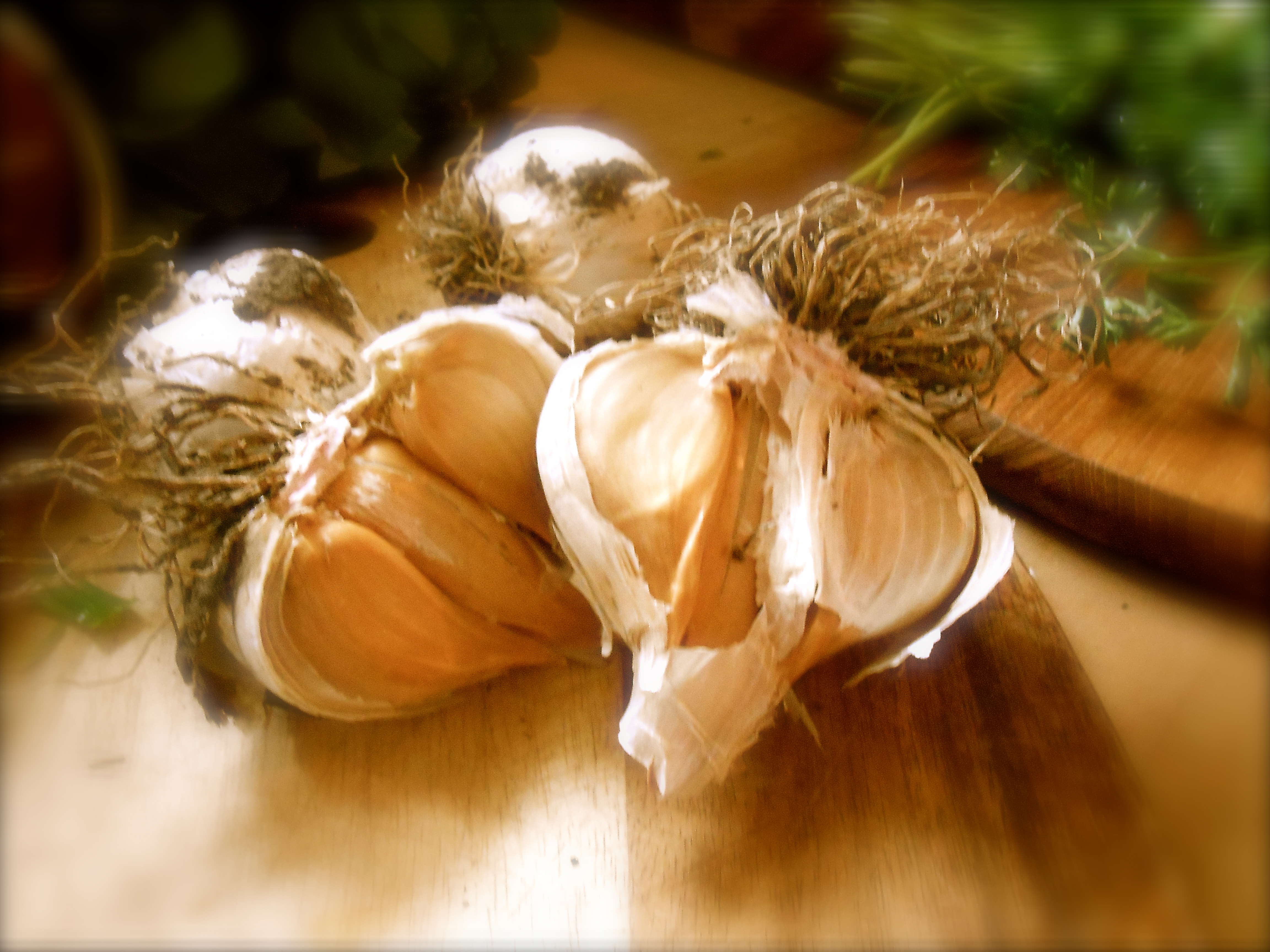 I love garlic and I buy at least a head of it every week. It hit me yesterday when I was at the market. There really is a technique for picking out a good head of garlic. The bulbs need to be large and plump! Pick a head that feels dense and heavy. Juicy garlic is fresh garlic! You want your garlic nice and firm to the touch. The papery cover should be intact and not peeling off too much. Make sure it appears white. If the garlic is spongy, yellow or grayish it is not fresh. If it feels light and looks shriveled, it’s a sign of dryness and age. Once it has aged it loses its sweetness and becomes very sharp and pungent. A number of times I have only been able to find “aged” garlic. It is still good to cook with, however, you may have to use less. And try not to be tempted to use the already peeled or chopped garlic available. If you take the extra few minutes and peel your own, it can really makes a difference in the outcome of your cooking!