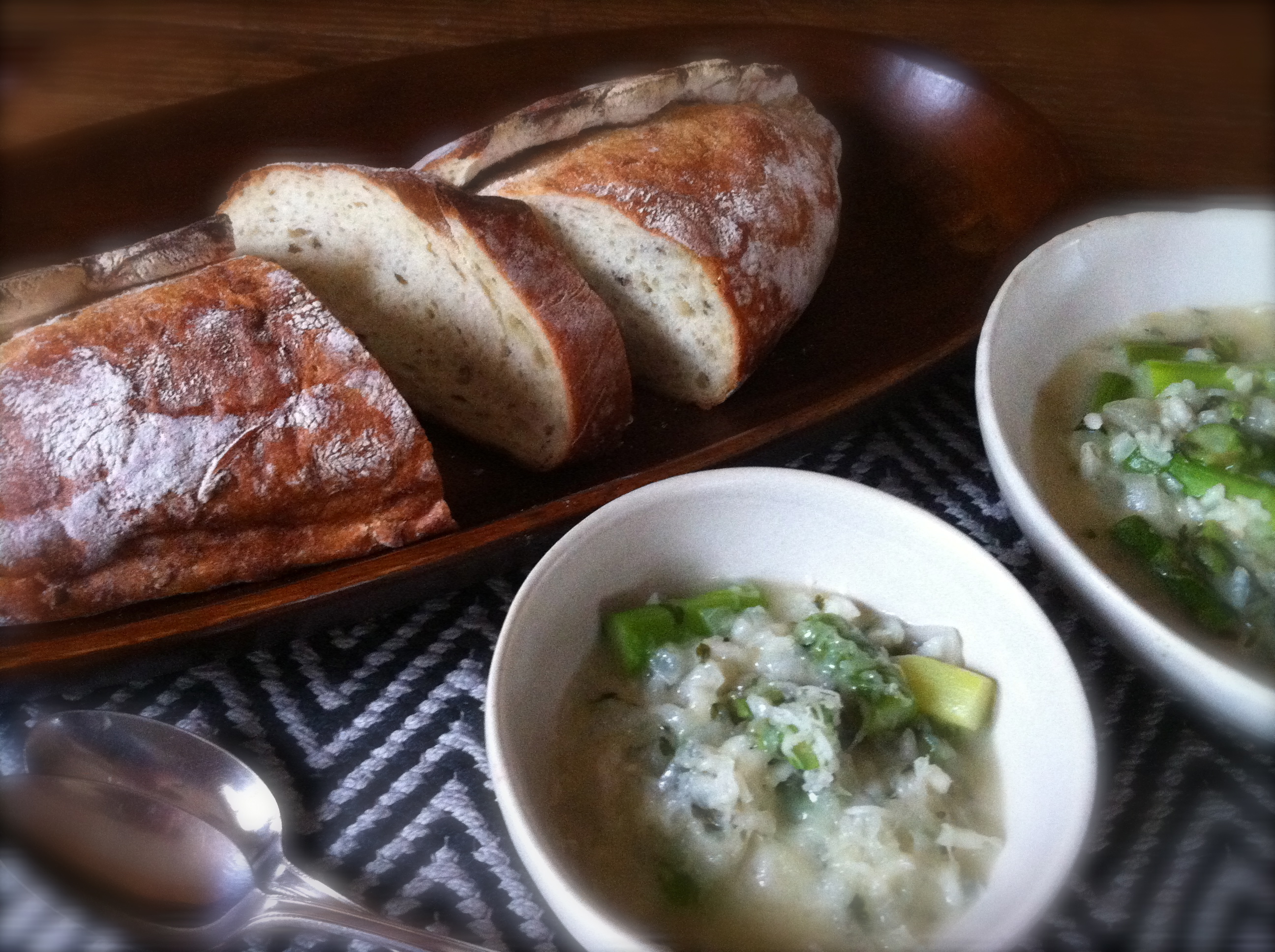 The asparagus-rice soup recipe I found in Verdura is remarkable. Simple and satisfying. It is a fresh springtime soup. The arborio rice adds a pleasant chewy texture and the cacio d’roma cheese, which melts into the soup gives the soup a satisfying creaminess.