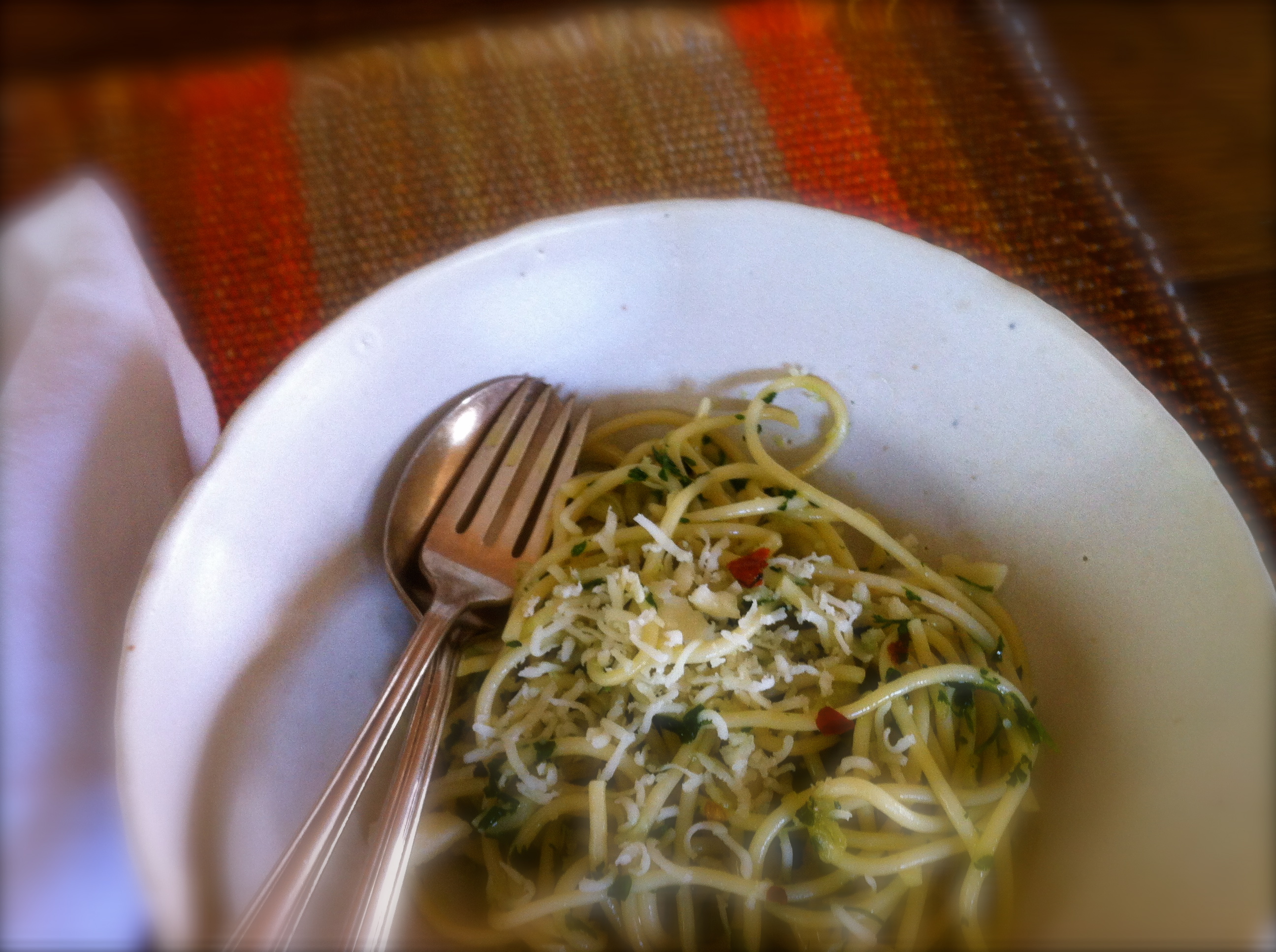 This recipe features spaghetti with garlic and olive oil, also known as spaghetti aglio e olio. I vividly remember having spaghetti aglio e olio for the first time. I was mesmerized. Up until that point spaghetti for me was tomato sauce with ground meat either cooked in the sauce or made into meatballs. The simplicity of this sauce makes it so easy to throw together. Most of the time I already have all the ingredients in house. In my opinion, the sauce relies on a good quality spaghetti. Try to buy the best brand from Italy you can find.
