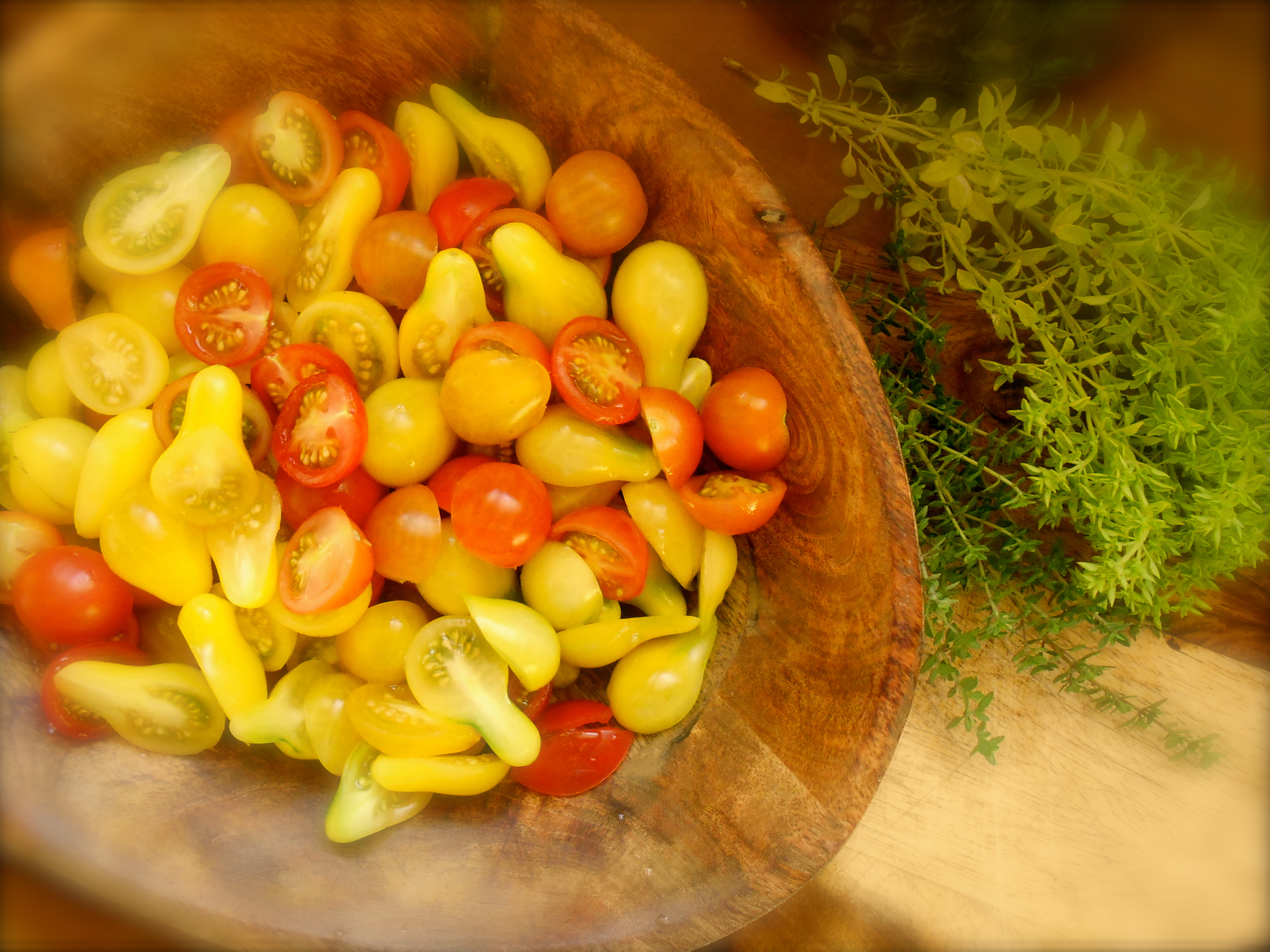 - 6 cups Sun Gold or Cherry tomatoes, sliced in half